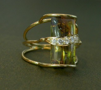 The amber was faceted on the pavilion and cabochoned |