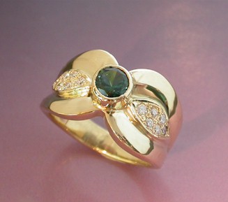 natural blue-green coloured Sapphire which is complimented