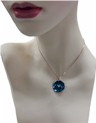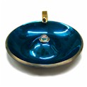 Striking iridescent blue titanium and gold designer pendant with diamond. This pendant is so versatile, that it can be a jewelry accent for day or evening wear. A 2mm chain or cord will fit through this bail. The picture of the model wearing this designer titanium necklace illustrates  the size of this pendant.