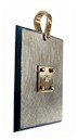 This is an elegant square Titanium Pendant with strong minimalist design. The classical brushed finish with a dash of funkiness in the blue titanium edges. Framed in the centre is a star set Diamond on 14k Gold. A 2mm chain or cord will fit through this awl. The picture of the model wearing this square pendant demonstrates the size of this pendant. On the back of this designer pendant you have the artist signature stamp, ti for titanium and 14ct stamp