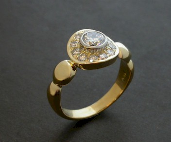 This 18ct Yellow Gold Ring has small diamonds pavé
