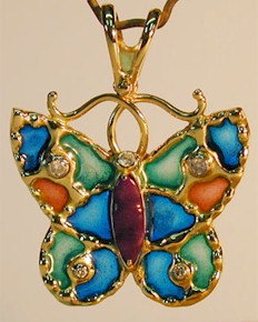 A delicate enamel butterfly pendant done in the