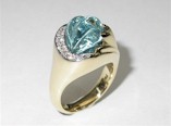 18ct Ring with a carved Aquamarine and diamonds.
