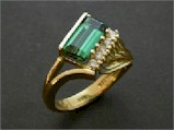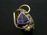 18ct Yellow Gold Ring set with Triangular Tanzanite, Diamonds and Emeralds Commissioned