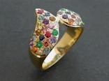 14ct Yellow Gold ring pavé set with colourful mixed gemstones -