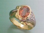 18ct Gold Art Ring with oval sunset orange Tourmaline and Diamonds -