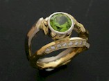 8ct Gold Art Ring with a round Peridot and Diamonds -