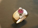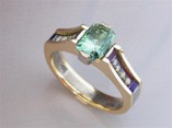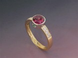18ct Ring with Reddish-Pink Tourmaline, Diamonds and Emeralds