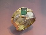 Tourmaline ring with white gold folding over yellow gold