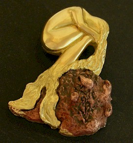 This 18ct gold mermaid pendant sitting on a copper rock is an art piece