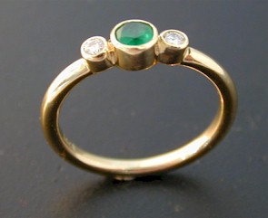 18ct Yellow Gold ring set an Emerald and two tube set Diamonds. Price: