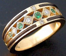 18ct ring 0.09ct Emeralds and 0.08ct Diamonds