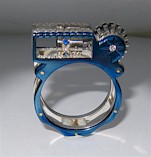 Mechanical Art - Working model of a piston in a blued titanium ring. By turning the wheel the piston moves.